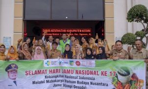 KEDIRI | DN –  Dalam rangka memperingati Hari Jamu Nasional Tanggal 27 Mei Tahun 2025 dengan tema Kebangkitan Nasional Indonesia melalui mahakarya warisan budaya nusantara jamu (Djampi Oesodo), Dinas Kesehatan menyelenggarakan kegiatan minum jamu bersama karyawan dan edukasi kepada pengunjung layanan perijinan di Kantor Dinas Kesehatan. Kegiatan ini juga dihadiri oleh Kelompok Asuhan Mandiri Tanaman Obat Keluarga (Asman Toga) serta Asosiasi Ramuan ASPETRI (Asosiasi Pengobatan Tradisional Ramuan Indonesia) Kabupaten Kediri