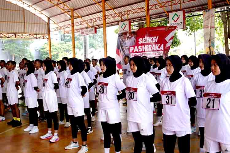 TUBAN | DN – Semangat nasionalisme tampak menggelora di GOR Rangga Jaya Anoraga, Kamis (16/4), saat 135 pelajar SMA/SMK/MA se-Kabupaten Tuban mengikuti seleksi Pasukan Pengibar Bendera Pusaka (Paskibraka) 2026. Mereka adalah hasil penyaringan dari 390 pendaftar, terdiri atas 60 putra dan 75 putri.