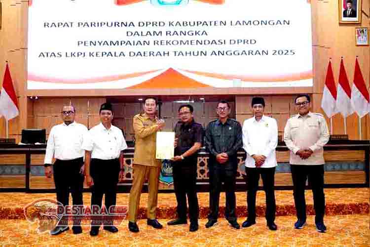 LAMONGAN | DN – Dewan Perwakilan Rakyat Daerah (DPRD) Kabupaten Lamongan resmi menyerahkan keputusan terkait rekomendasi atas Laporan Keterangan Pertanggungjawaban (LKPJ) Bupati Lamongan Tahun Anggaran 2025 dalam rapat paripurna yang digelar di gedung DPRD setempat.