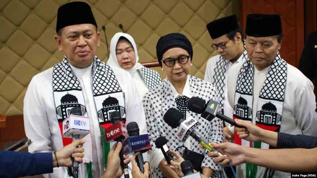 Menteri Luar Negeri RI Retno Marsudi saat menghadiri acara penutupan Safari Ramadan di gedung DPR/MPR Jakarta, Senin, 1 April 2024. (Foto: INDRA YOGA/VOA)
