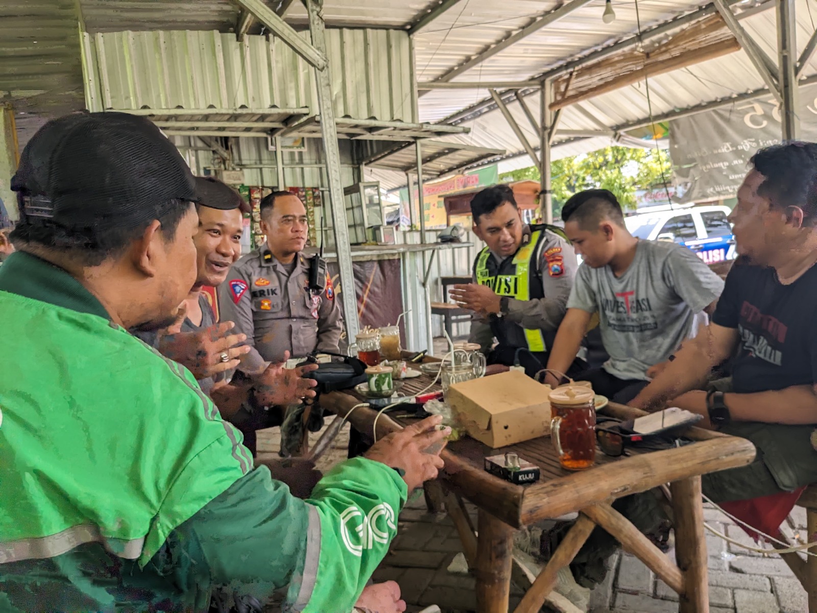 Sampaikan Pesan Kamseltibcarlantas Polres Bojonegoro Ngopi Bareng Ojol