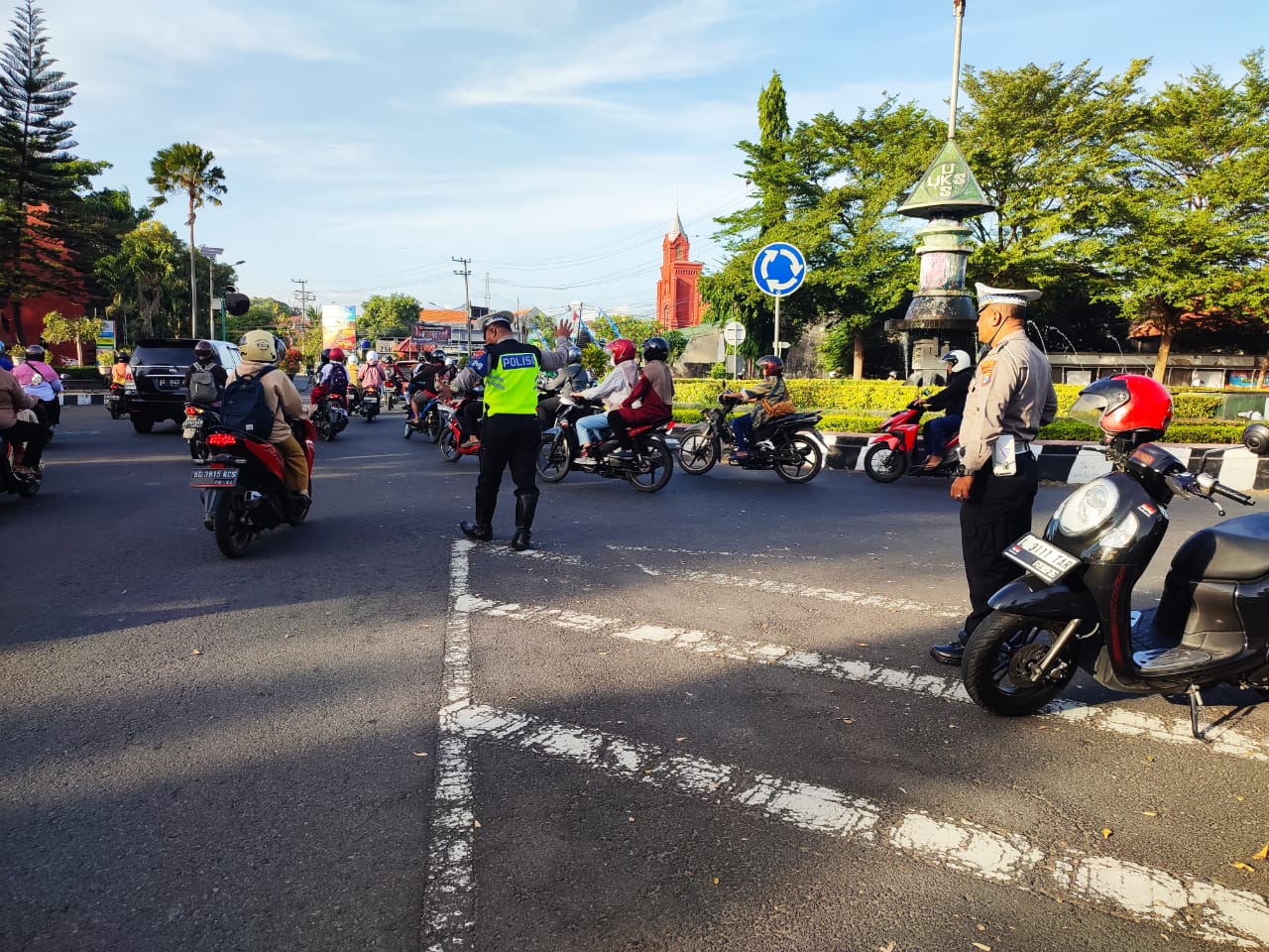 KEDIRI KOTA | DN – Memberikan rasa nyaman dan aman para pengguna jalan dipagi hari,Polres Kediri Kota Polda Jatim, memberikan pelayanan prima kepada masyarakat khususnya bagi masyarakat dan pelajar yang mulai beraktivitas di pagi hari