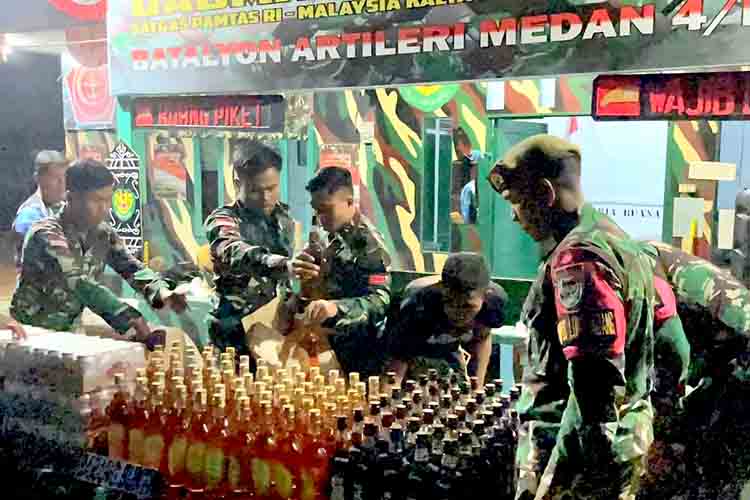 NUNUKAN | DN – Satgas Pengamanan Perbatasan (Pamtas) RI–Malaysia Wilayah Kaltara/Kaltim Sektor Barat Yonarmed 4/Parahyangan Kodam III/Siliwangi berhasil menggagalkan penyelundupan minuman keras (miras) dan munisi ilegal yang masuk dari Malaysia ke Indonesia, Rabu (21/01/2026).