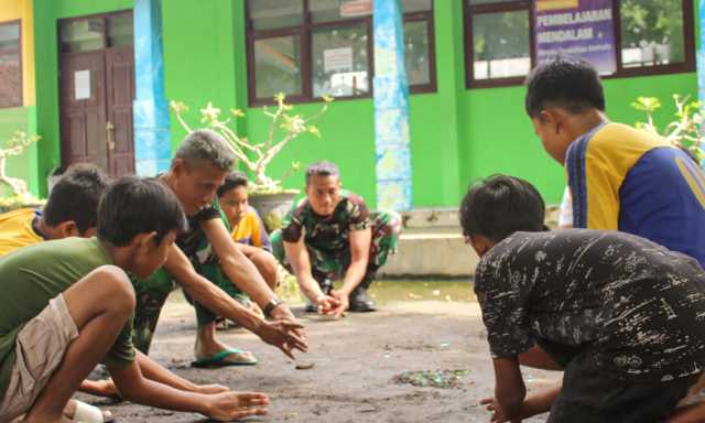 Kegiatan tersebut diikuti para siswa yang tampak antusias bermain bersama anggota Satgas TMMD di halaman sekolah. Sejumlah permainan tradisional yang dimainkan antara lain kelereng, lompat tali, serta gedrek atau engklek.