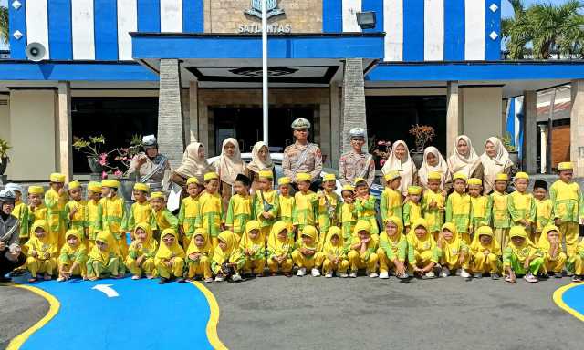 Dalam rangka membangun kedekatan dan edukasi sejak dini, Unit Kamsel Satlantas Polres Kediri Kota menggelar kegiatan Polisi Sahabat Anak (POLSANAK) bersama siswa-siswi PAUD/TK Al-Mubarok Kelurahan Banjarmlati, Kota Kediri.