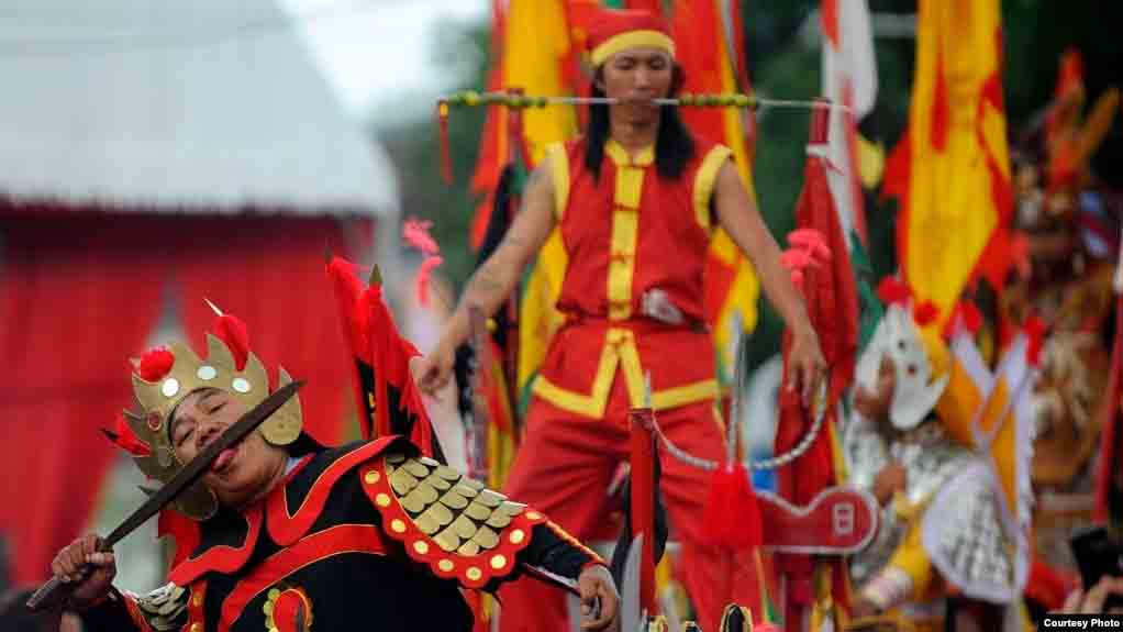 Seorang peserta melakukan atraksi dengan pedang saat festival Cap Go Meh yang menandai berakhirnya perayaan Tahun Baru Imlek di Singkawang, provinsi Kalimantan Barat (foto: ilustrasi).