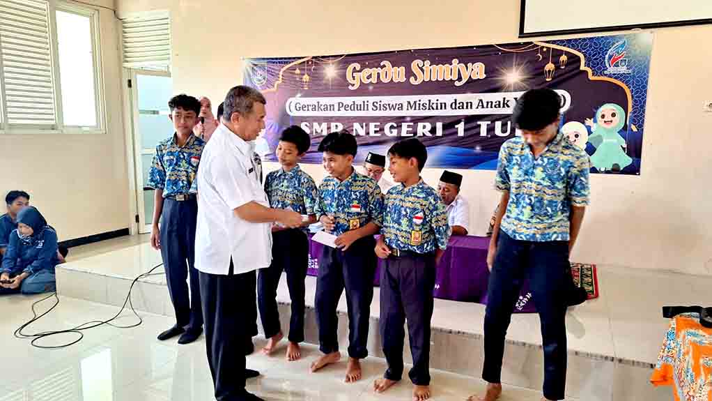 LAMONGAN ( DN ) – Gerakan Peduli Anak Yatim Piatu dan Siswa yang belum beruntung Turi (Gerdu Simiya), SMP Negeri 1 Turi, Sebanyak 62 siswa/siswi menerima santunan secara langsung dari Kepala SMP Negeri 1 Turi, Harto,S.Pd.,M.Pd.