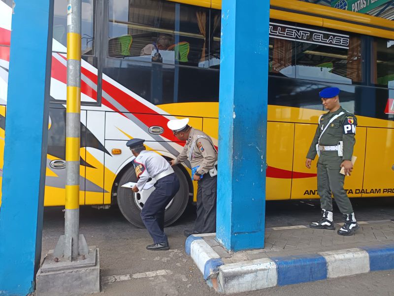 LUMAJANG | DN – Sejumlah bus antar kota antar provinsi yang bertujuan ke Bali, diperiksa oleh petugas gabungan Polres Lumajang yang bersinergi dengan TNI dan Dinas Perhubungan setempat di Terminal Minak Koncar Lumajang.