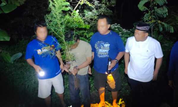 Penangkapan dilakukan pada Kamis (26/2/2026) sekitar pukul 21.00 WIB. Tersangka pertama berinisial H (36), diamankan di Desa Petung Ombo, Kecamatan Plosoklaten. Dari lokasi tersebut, petugas menemukan enam pot berisi 11 pohon ganja berusia sekitar dua minggu serta satu unit handphone.