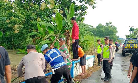 MAGETAN | DN – Pasca banjir yang melanda wilayah Kecamatan Kartoharjo, anggota Polres Magetan Polda Jatim bersama TNI, BPBD, dan masyarakat setempat bergotong royong membersihkan tumpukan sampah di aliran Sungai Kali Ulo, Desa Jajar.