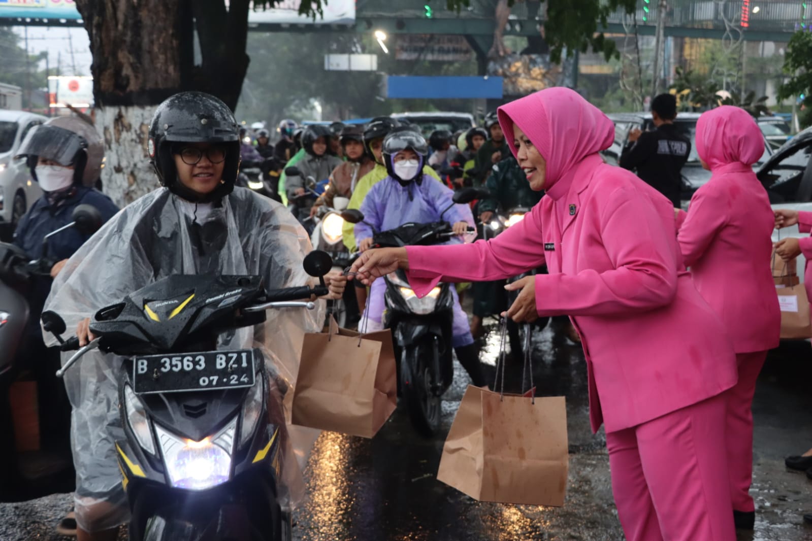 KOTA BARU (DN) – Kepala Kepolisian Resor Batu AKBP Oskar Syamsuddin bersama Ketua Bhayangkari Cabang Batu Ny. Raudiah Oskar dan jajaran Pengurus melakukan aksi mulia dengan berbagi takjil berbuka puasa kepada para pengendara.
