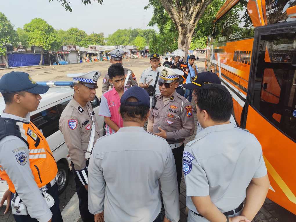 Tingkatkan Keselamatan Polres Gresik Bersama Jasa Raharja dan Dishub Gelar Ramp Check Bus Pariwisata