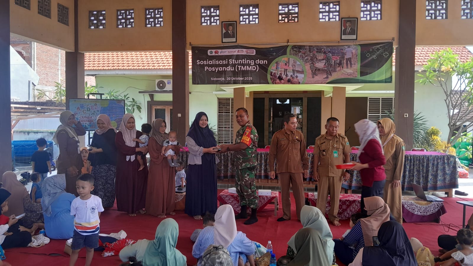 SIDOARJO – DN | Dalam rangkaian kegiatan TNI Manunggal Membangun Desa (TMMD) ke-126 Tahun 2025, Kodim 0816/Sidoarjo bersinergi dengan Dinas Kesehatan Kabupaten Sidoarjo dan Puskesmas Kepadangan Tulangan menggelar sosialisasi pencegahan stunting dan pemberian makanan tambahan bergizi (PMT) di Desa Kedondong, Kecamatan Tulangan, Senin (20/10/2025).