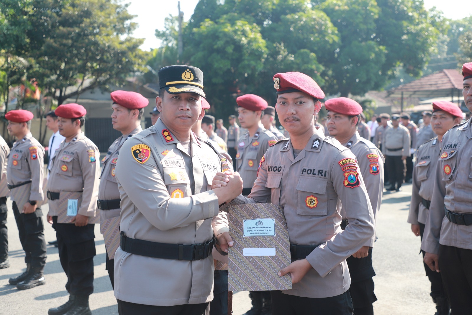 Kapolres Kediri AKBP Bimo Ariyanto, S.H., S.I.K. hadir langsung memimpin kegiatan. Turut berpartisipasi Wakapolres Kediri Kompol Verawaty Thaib, S.I.K., Pejabat Utama (PJU), personel dan ASN Polres Kediri, serta Kapolsek dan anggota Polsek jajaran sebagai peserta upacara.