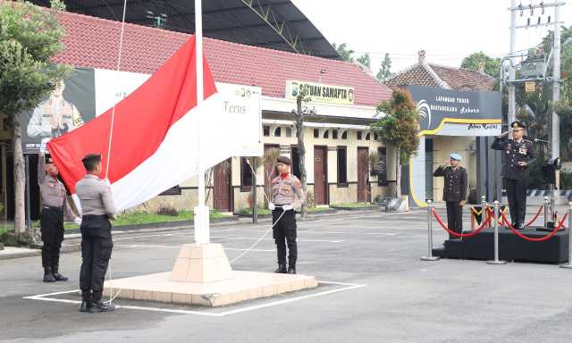 Upacara yang digelar di Lapangan Apel Mapolres Kediri itu dipimpin langsung oleh Kapolres Kediri AKBP Bramastyo Priaji, S.H., S.I.K., M.Si. selaku inspektur upacara, dan diikuti para pejabat utama (PJU) serta personel Polres Kediri.