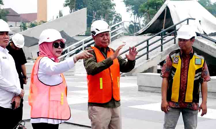 SIDOARJO – DN | Wakil Bupati Sidoarjo Hj. Mimik Idayana memberikan perhatian khusus terhadap proyek revitalisasi Alun-alun Sidoarjo. Pagi tadi ia kembali meninjau progres pengerjaan, Rabu, (5/11). Ia ingin proyek yang menelan anggaran Rp. 24,6 milyar itu selesai tepat waktu.