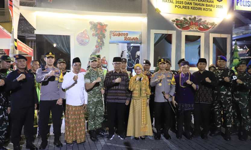 KEDIRI KOTA | DN – Kapolres Kediri Kota AKBP Anggi Saputra Ibrahim, S.H., S.I.K., M.H. bersama Forum Koordinasi Pimpinan Daerah (Forkopimda) Kota Kediri melaksanakan kunjungan dan peninjauan sejumlah Pos Pengamanan (Pos Pam) dan Pos Pelayanan (Pos Yan) di wilayah Kota Kediri, pada hari Rabu (31/12).